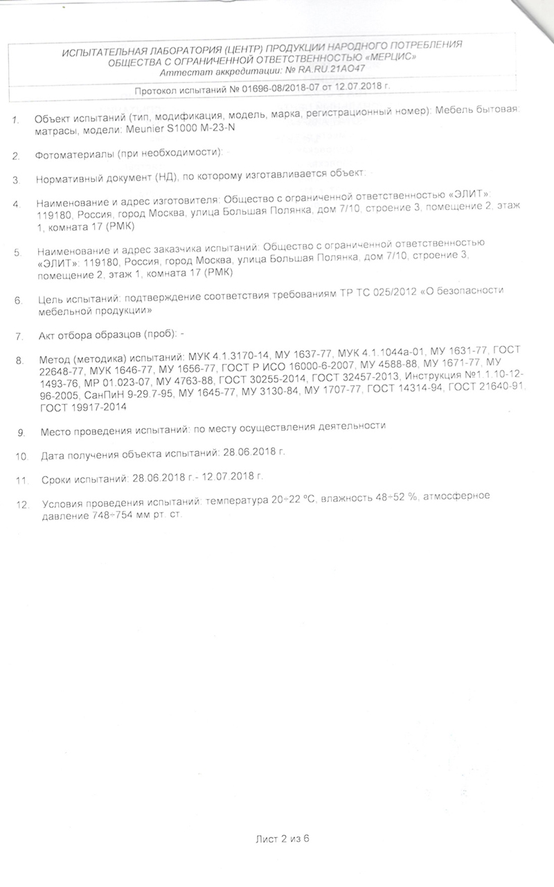 Гарантийные сроки от 18 месяцев до 60 месяцев, с даты, которая указана в накладной, в зависимости от модели матраса